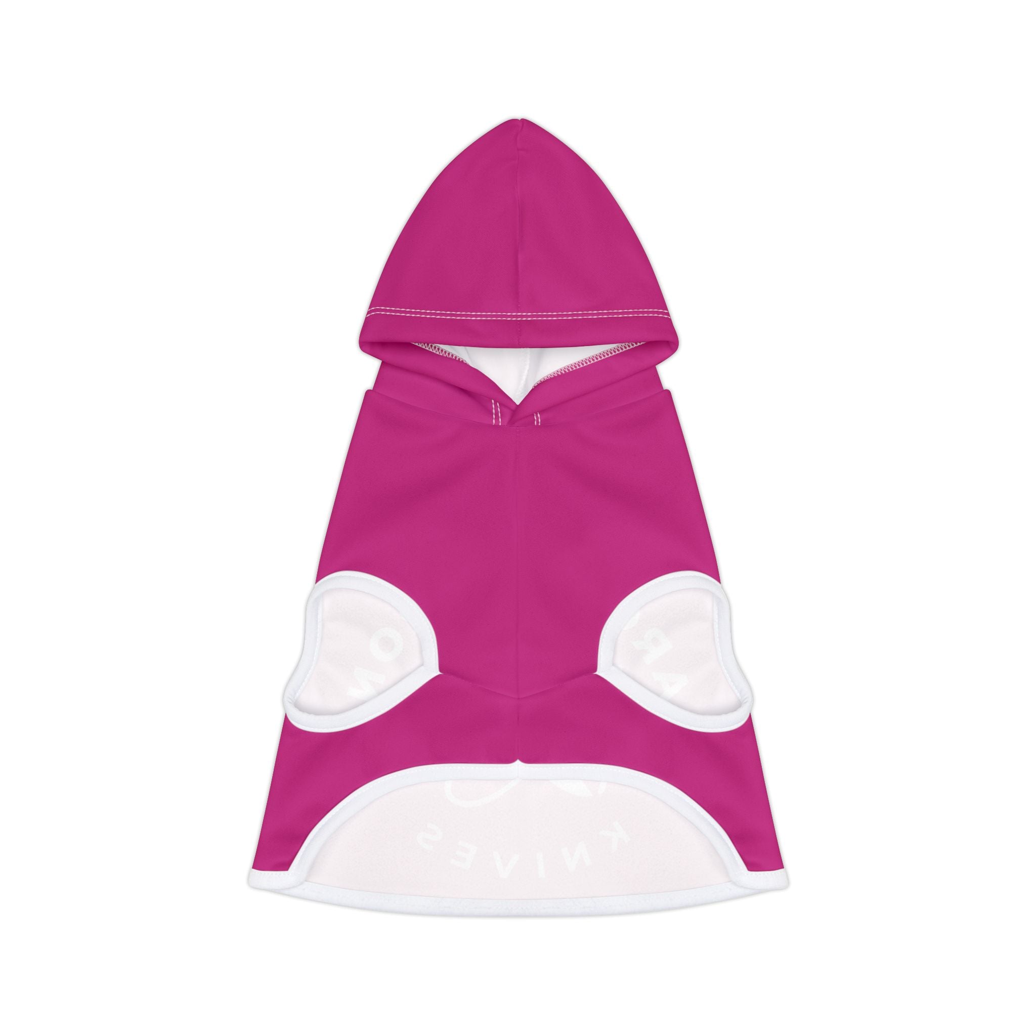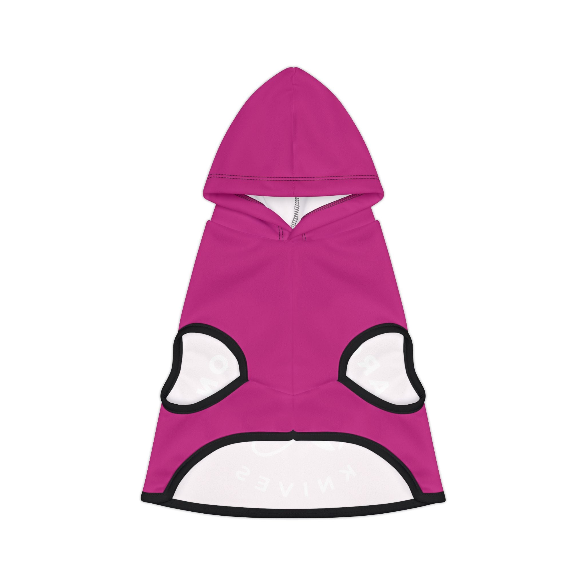 This cozy pet hoodie wraps your small companion in soft, lightweight warmth with a clean, modern look. Tailored openings and a shaped hem keep movement comfortable, while the hood adds an extra layer of shelter for chilly walks or quiet mornings at home. The black-or-white rib and matched seam thread give a polished, minimalist finish that pairs with any collar or leash. Built from durable polyester, it resists stretching and dries fast — good for active pups and pets who love puddle-side adventures. Assembled in the USA from globally sourced parts and available in seven sizes, this hoodie blends practical durability with a simple, stylish silhouette pets will tolerate and owners will love to dress them in.